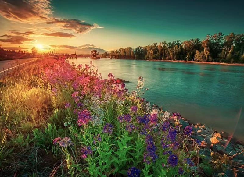福建龍岩櫻花園,春天來臨,一年一度的櫻花盛開。山坡茶園曲折,櫻花綴滿枝頭,粉色的櫻花隨着綠色的茶園,清新好看。