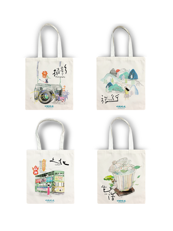 商品簡介:自家設計的文青布袋,分別以「文化」、「攝影」、「旅遊」及「生活」為主題。