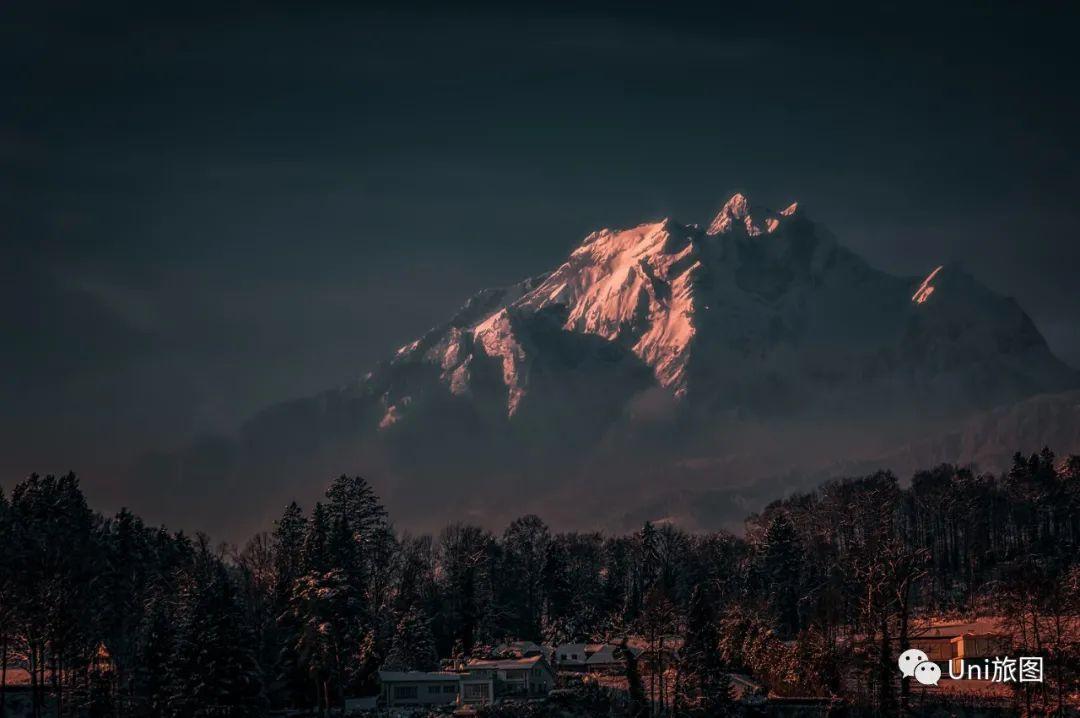 【雪山晨曦】瑞士琉森湖畔 一介布衣/攝
