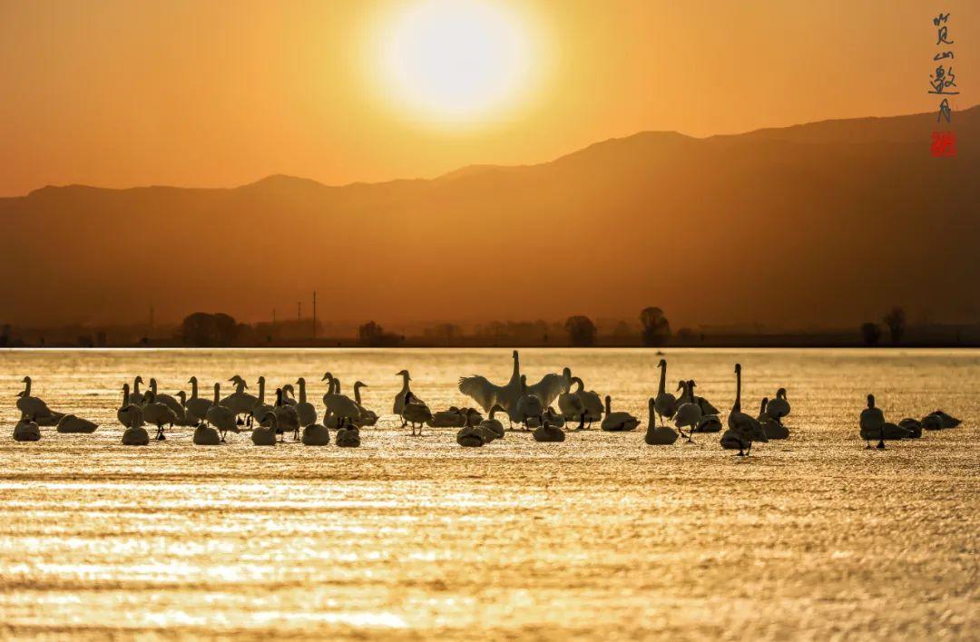 【晨光鵝影】山西廣靈縣下河灣濕地公園 覽山邀月/攝