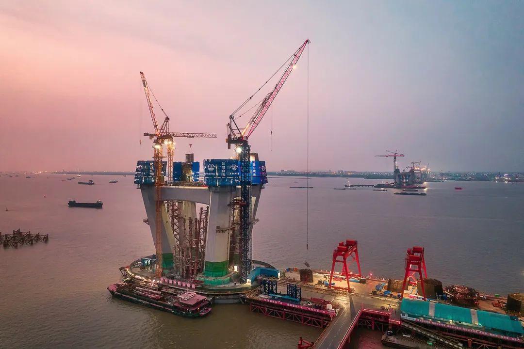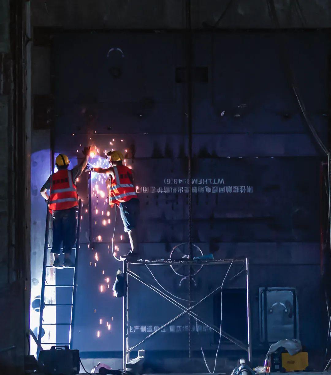 【夜幕下的過江通道工地】江蘇常州錄安洲 張建中/攝