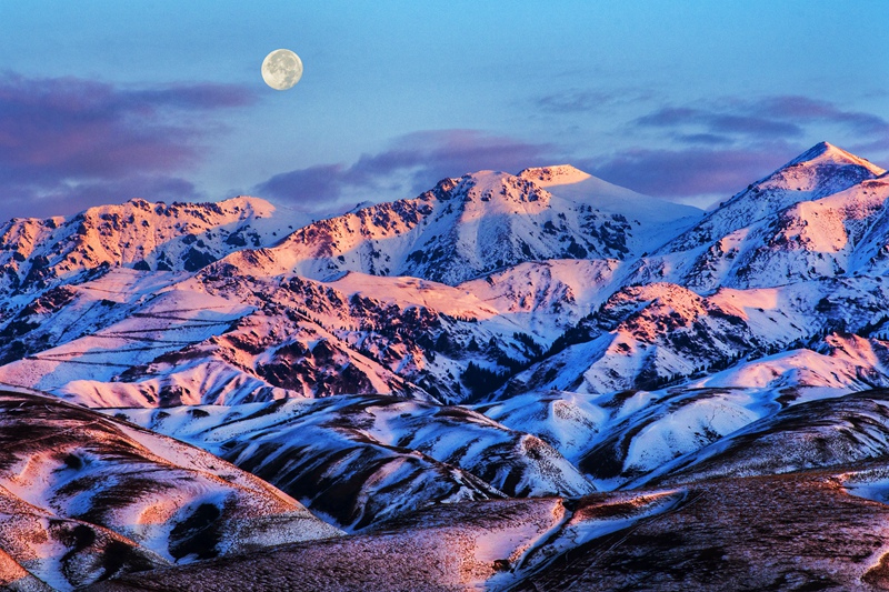 【雪山晨月】新疆 吉久利/攝